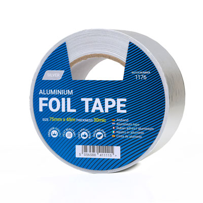 Aluminiumfolietape voor het afdichten van diverse soorten verbindingen en/of kanalen en ter bescherming tegen vocht en stof. Deze tape heeft een minimale en maximale werktemperatuur van -30°C tot +40°C echter dient geïnstalleerd te worden onder een temperatuur van minimaal 10°C en maximaal 40°C. De tape is 30 micron dik en heeft een treksterkte van > 110 N/25 mm.