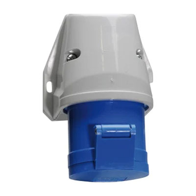 CEE wandcontactdoos (Female) 32 Ampere 2-polig plus aarde ( 3-polig ). Boven invoer M20. Kijk ook naar de bijbehorende wartels en wartelmoeren.