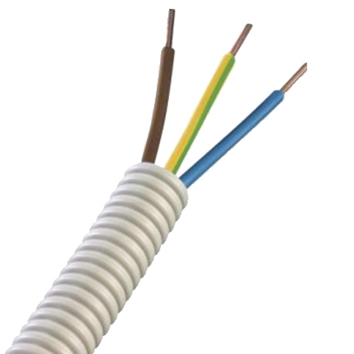 Voorbedrade flexibele buis van 16mm. Voorzien van 3 aders met een doorsnede van 2,5mm²